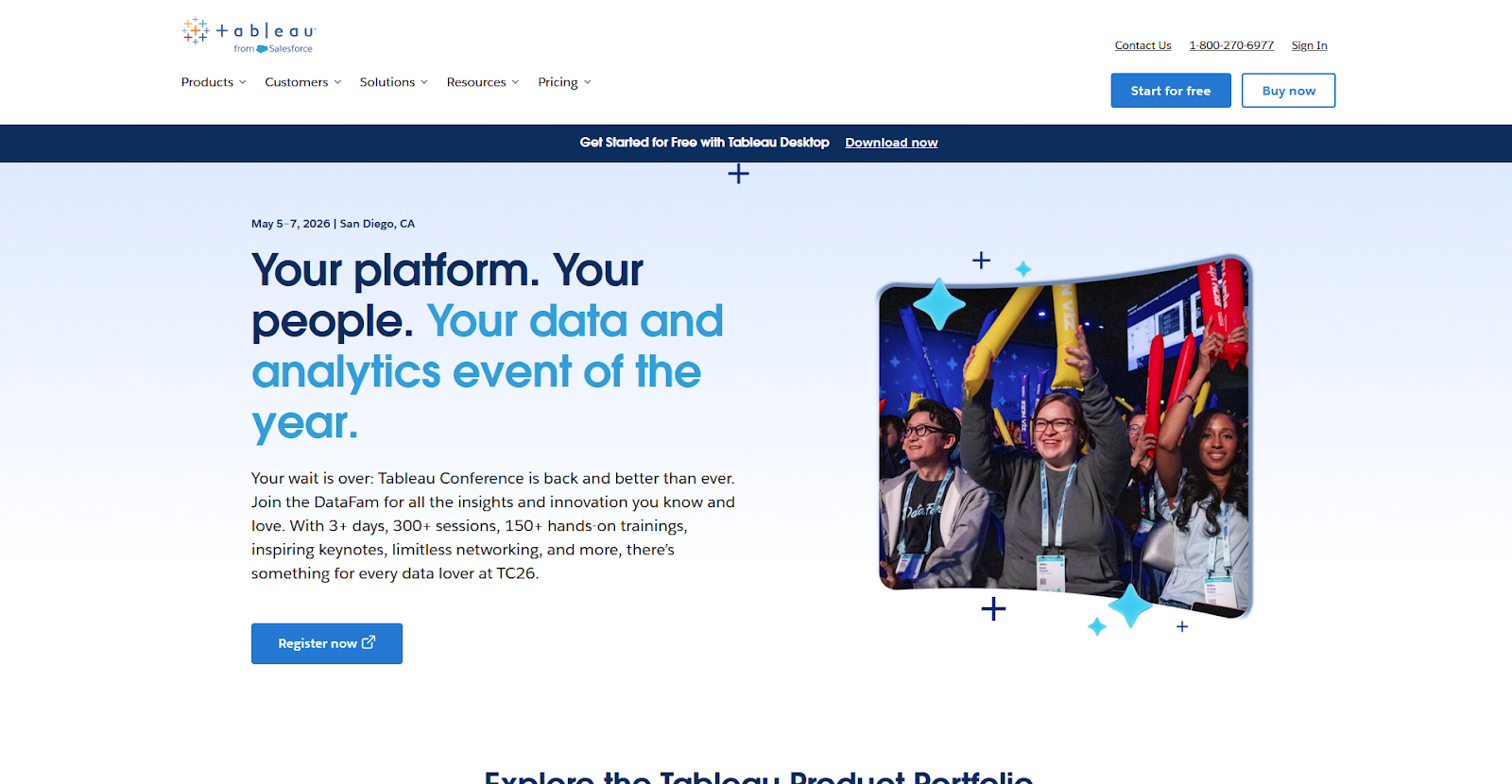 - What it does: Tableau is a business intelligence platform that lets teams connect, analyze, and visualize large datasets through interactive dashboards and reports.