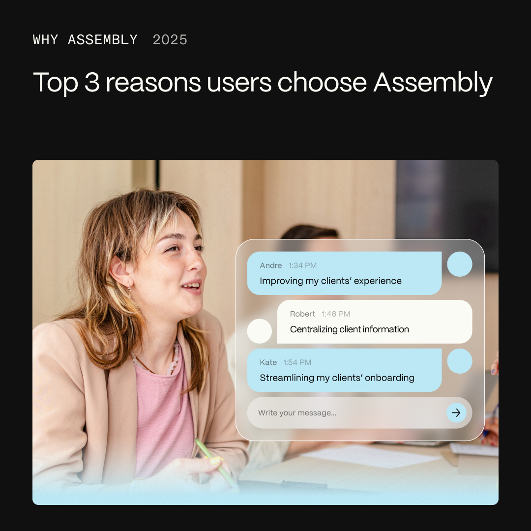 Time-based triggers for Assembly automations are here. Set up tasks that reoccur daily, weekly, monthly, quarterly, or on a custom schedule. Send recurring messages, trigger forms at regular intervals, or create quarterly check-in tasks for every active client. Target internal users, all clients, or all companies—the system handles the rest.