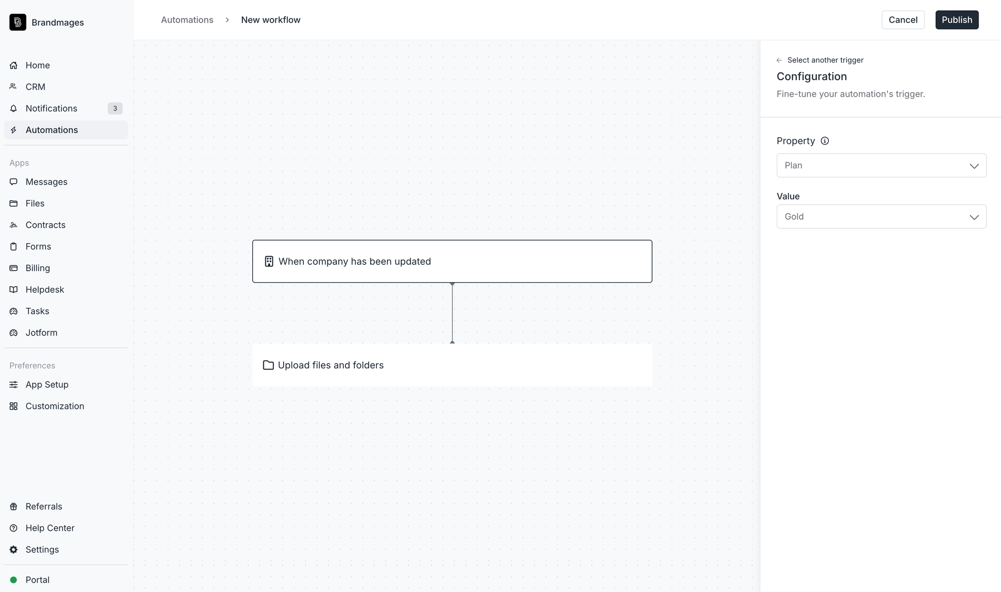 Whenever a company’s custom field tag is added, modified, or removed, you can trigger an automation to streamline your operations.