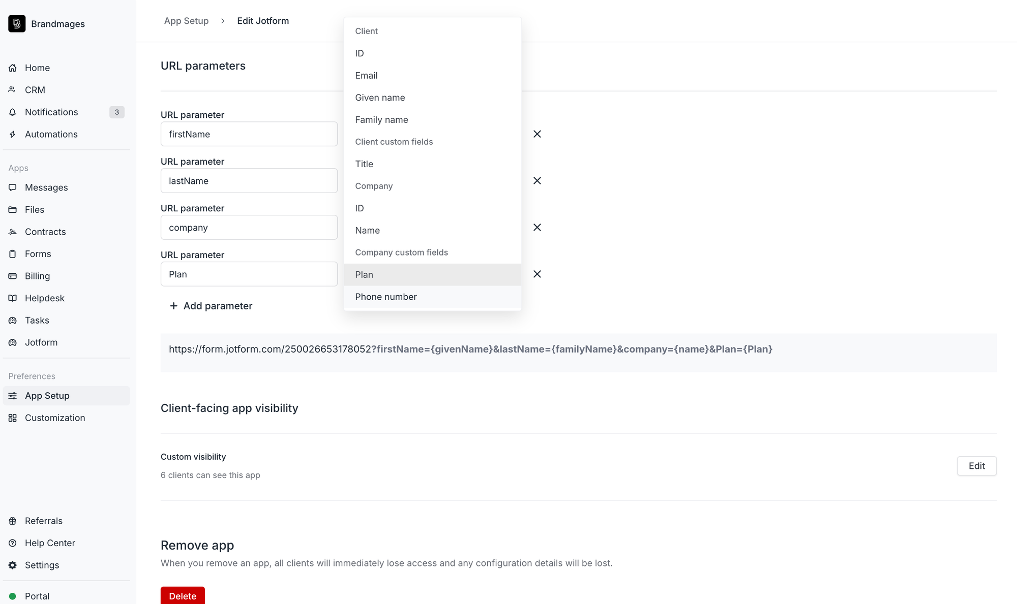 Before today, your embedded apps could pass a client’s custom fields as URL parameters. This is useful for passing information from these fields to external tools to save your clients time. We’ve now expanded this functionality to support company custom fields in URL parameters.