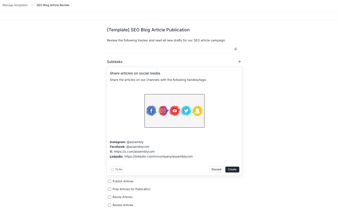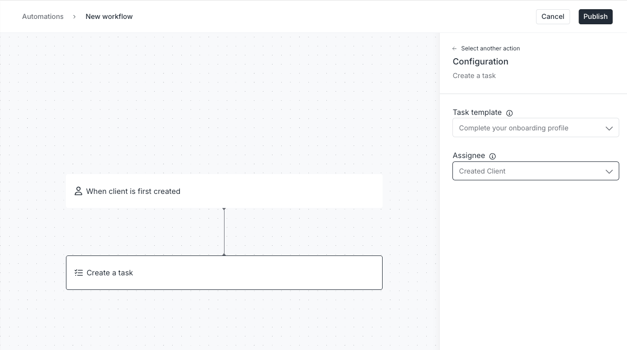 After creating a task from a template, you can assign the subtasks to clients or team members (with client visibility optional). Automations based on task templates will create the subtasks, but for now, you will need to set subtask assignees after.