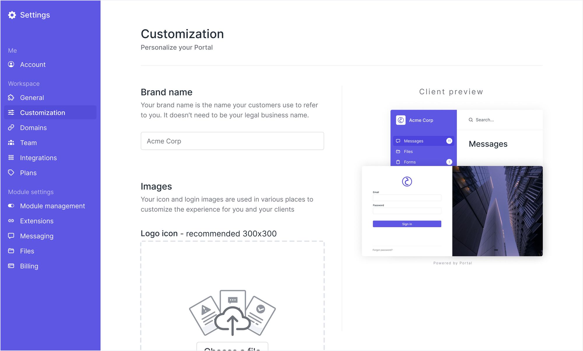 We completely redesigned and simplified the Customization Page (on Settings/Customization). If you're on a large screen, the right half of the page shows you a real-time preview so that you know exactly what the client experience will look like.