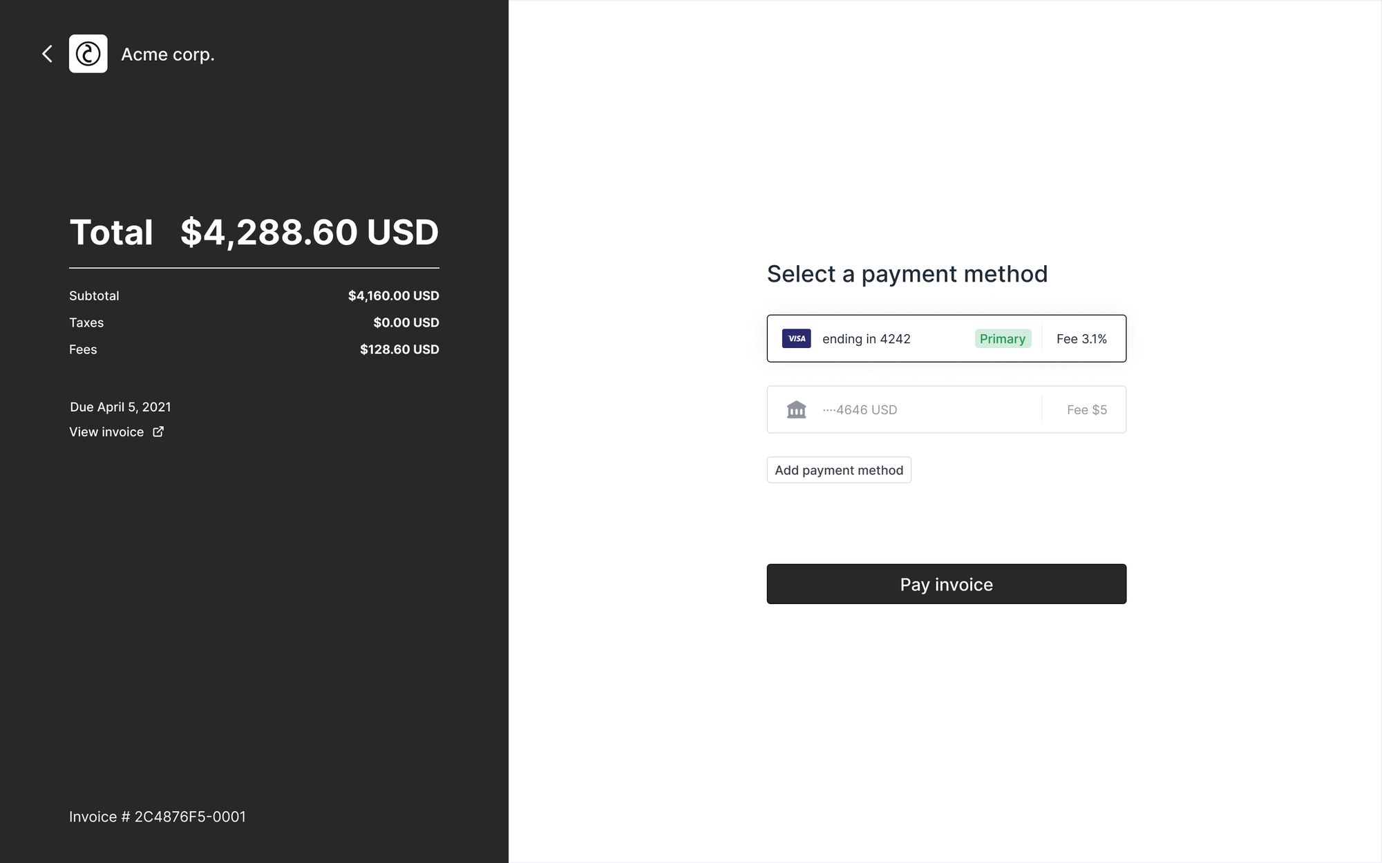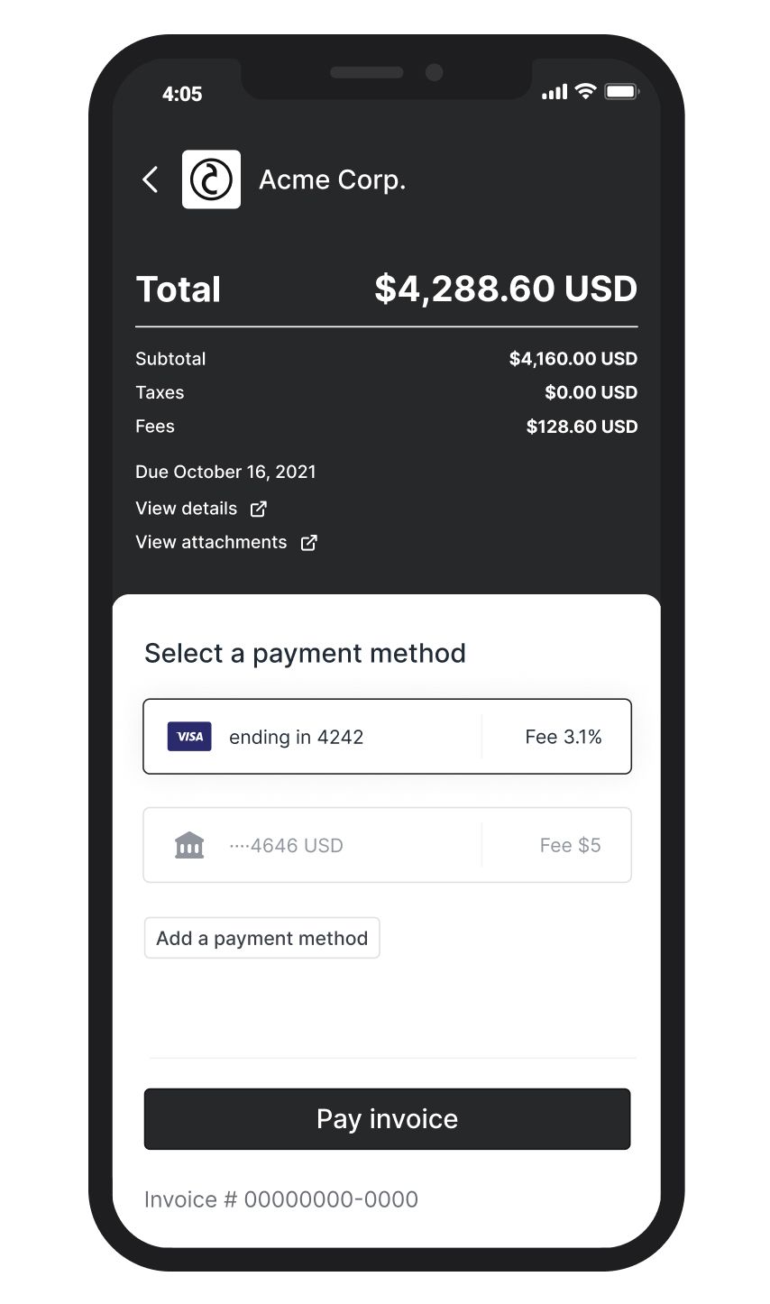 - Updated the invoice creation flow so that the toggles that let you specify what payment methods are allowed are hidden if you charge a client directly.