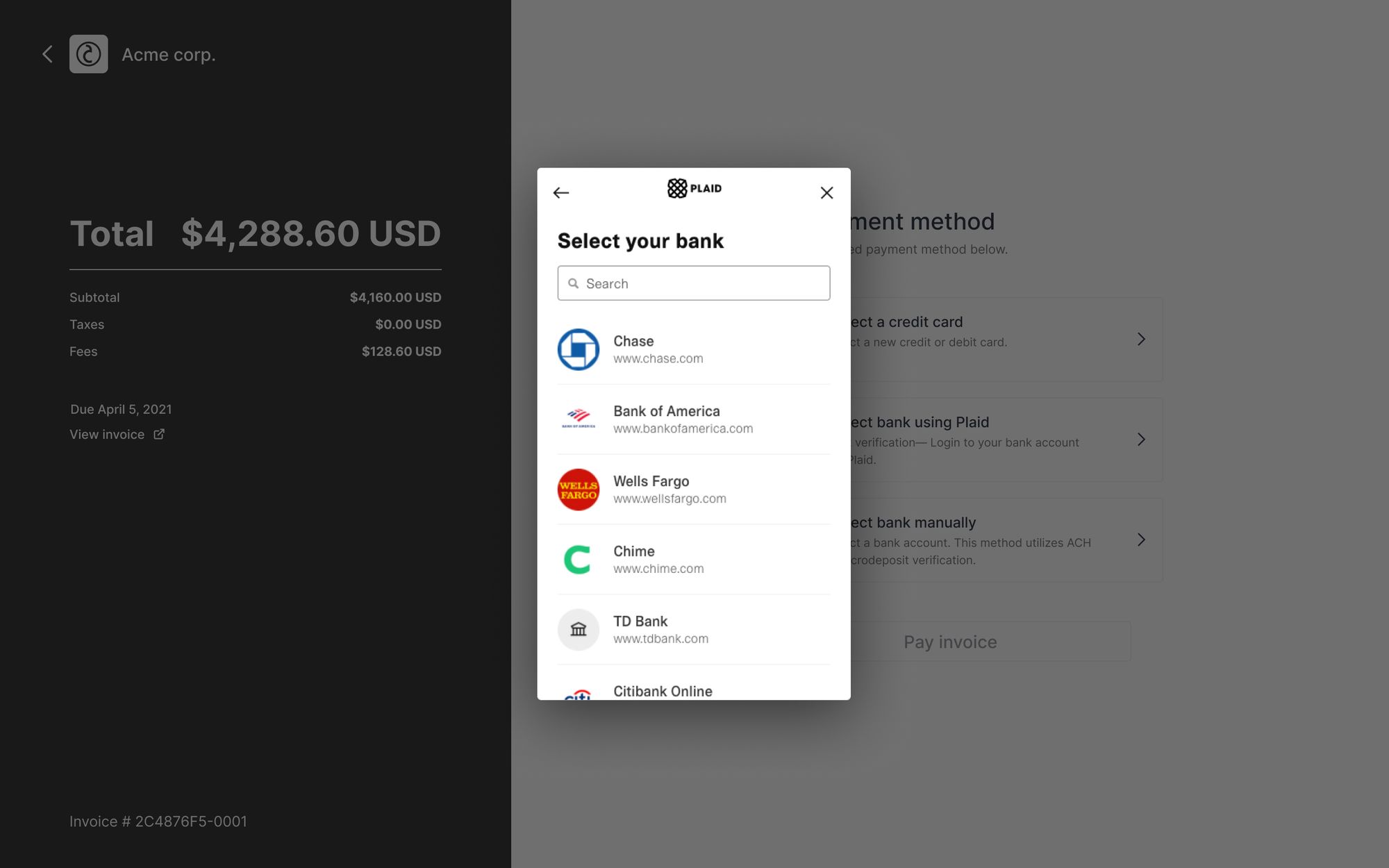 With this release, clients can instantly verify their bank account and make ACH payments. To make an ACH payment, clients can select their bank, log in, and are then redirected back to your portal to complete the payment.