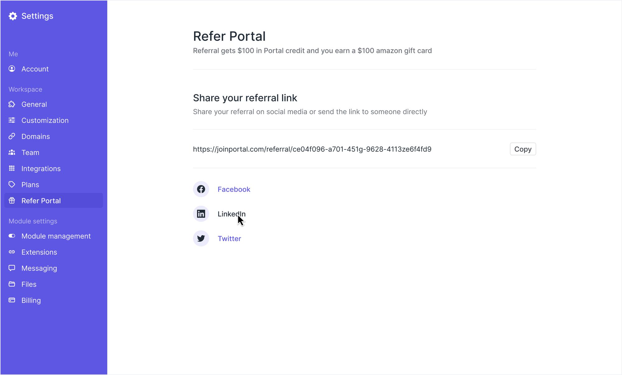 Existing Portal users now have an easy way to refer anyone to Portal with a unique share-able link. When someone you refer selects a paid plan you automatically receive a $100 Amazon gift card.