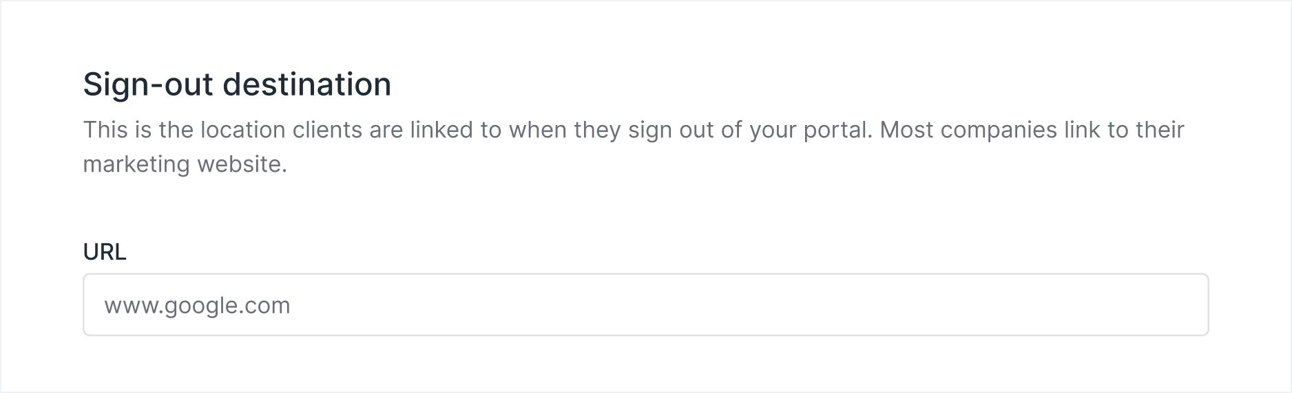 When a user logs out of your portal, we previously redirected them to your portal sign in screen. By default this still happens, but you now have the ability to set up a custom link. Many of you have told us that you would prefer it if signing out navigates the user to your marketing site instead. This can now be done in a few clicks.