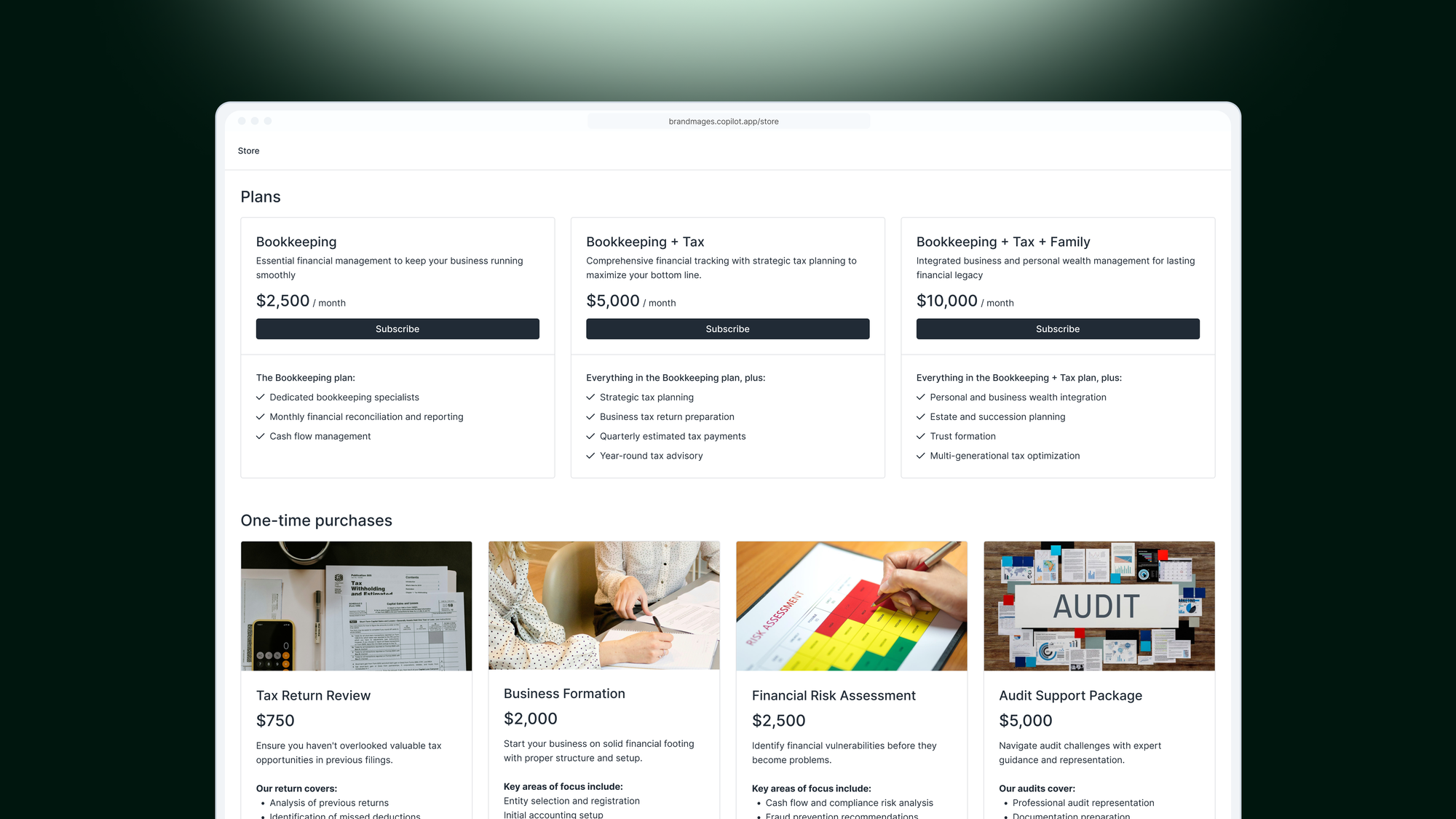We’re excited to announce Assembly Store — now you can create a Shopify-like storefront with recurring subscription plans and one-off services, making it easy for new leads and existing clients to pay.