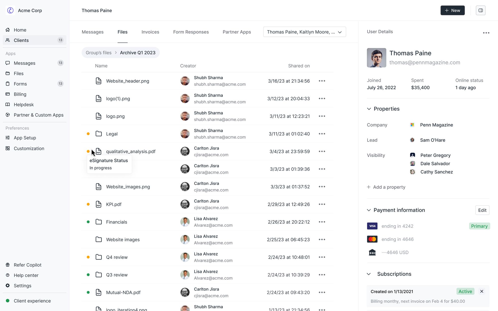 We’ve been surprised by how many businesses set up multiple portals, each with its own brand, to better cater to different audiences. We saw this with accounting firms that set up a separate crypto practice, growth marketing firms that set up unique brands for paid and content marketing, law firms that set up unique brands for serving businesses and individuals, and many others. In addition, we saw many marketing agencies that set up portals for their clients and wanted an easier way to manage them. Given the above, we’ve added full support for managing and easily switching between multiple portals.