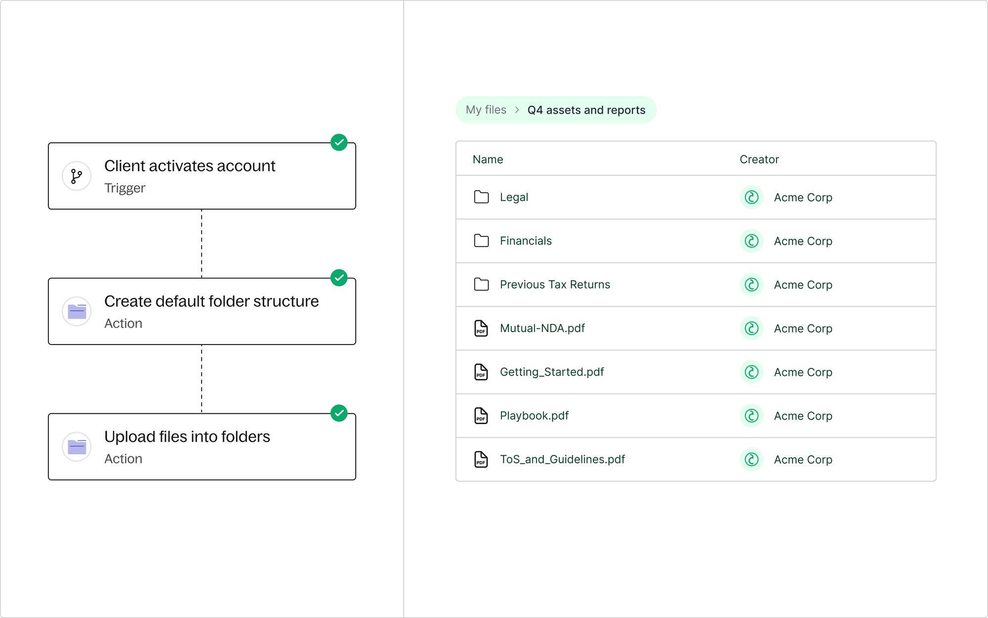 We've made substantial improvements to our Files API. In addition to being able to create folders in the Files App, you can now upload files via API as well. In addition we added webhooks for file.created, link.created, and folder.created events. You can learn more about the updated Files endpoint here and about our webhooks here. Future updates will bring these capabilities to Zapier as well.