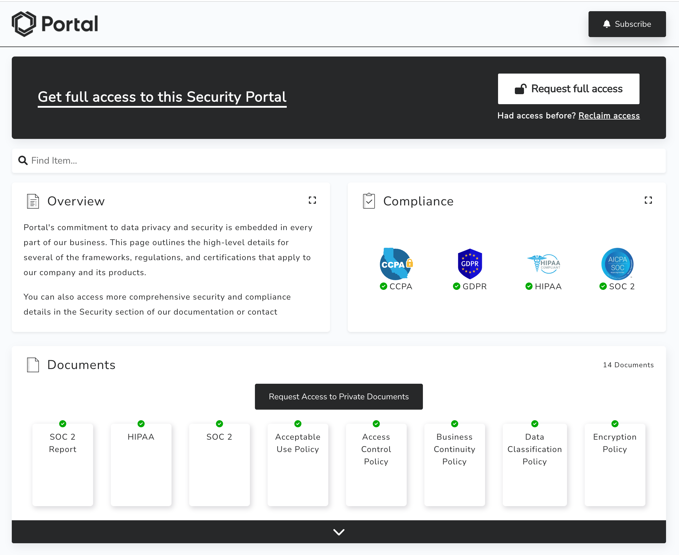 With SOC2 and HIPAA compliance in place, we're also launching a security center that lets you get a better understanding of our security posture and request private documents. You can access our security center here.